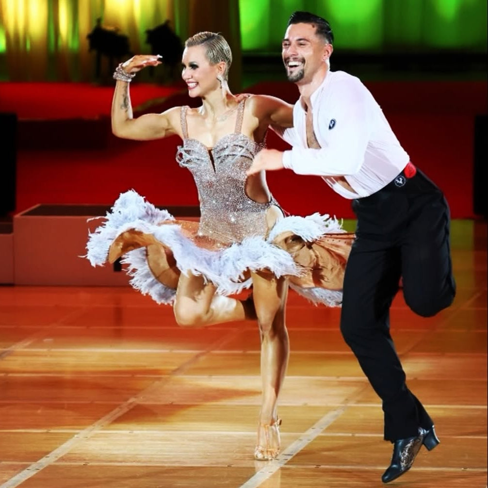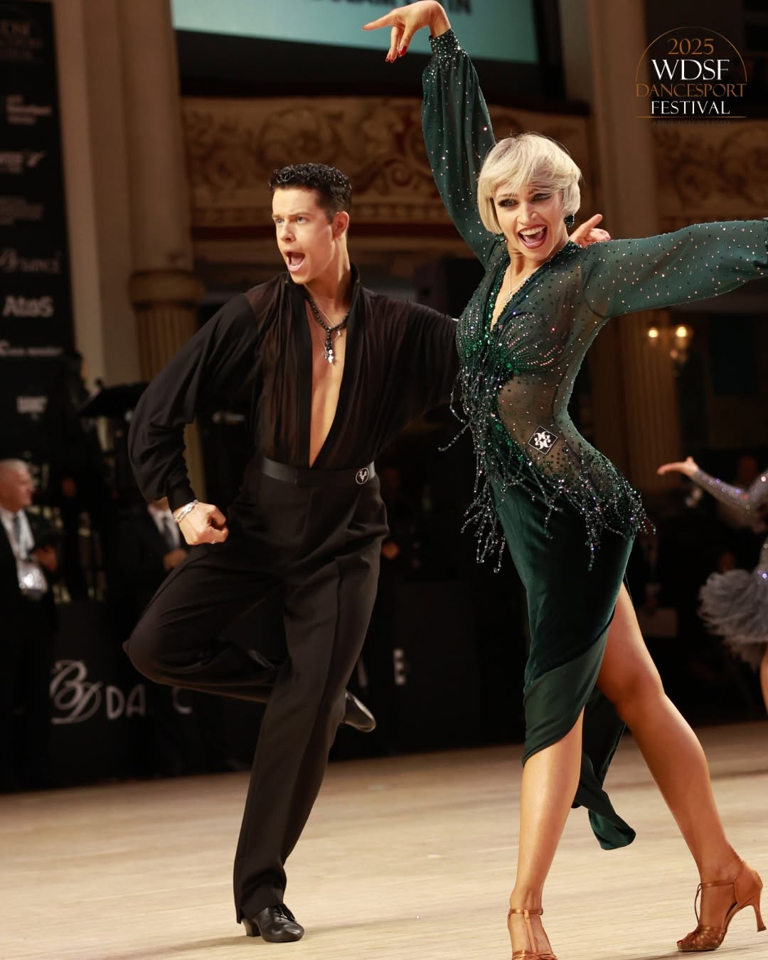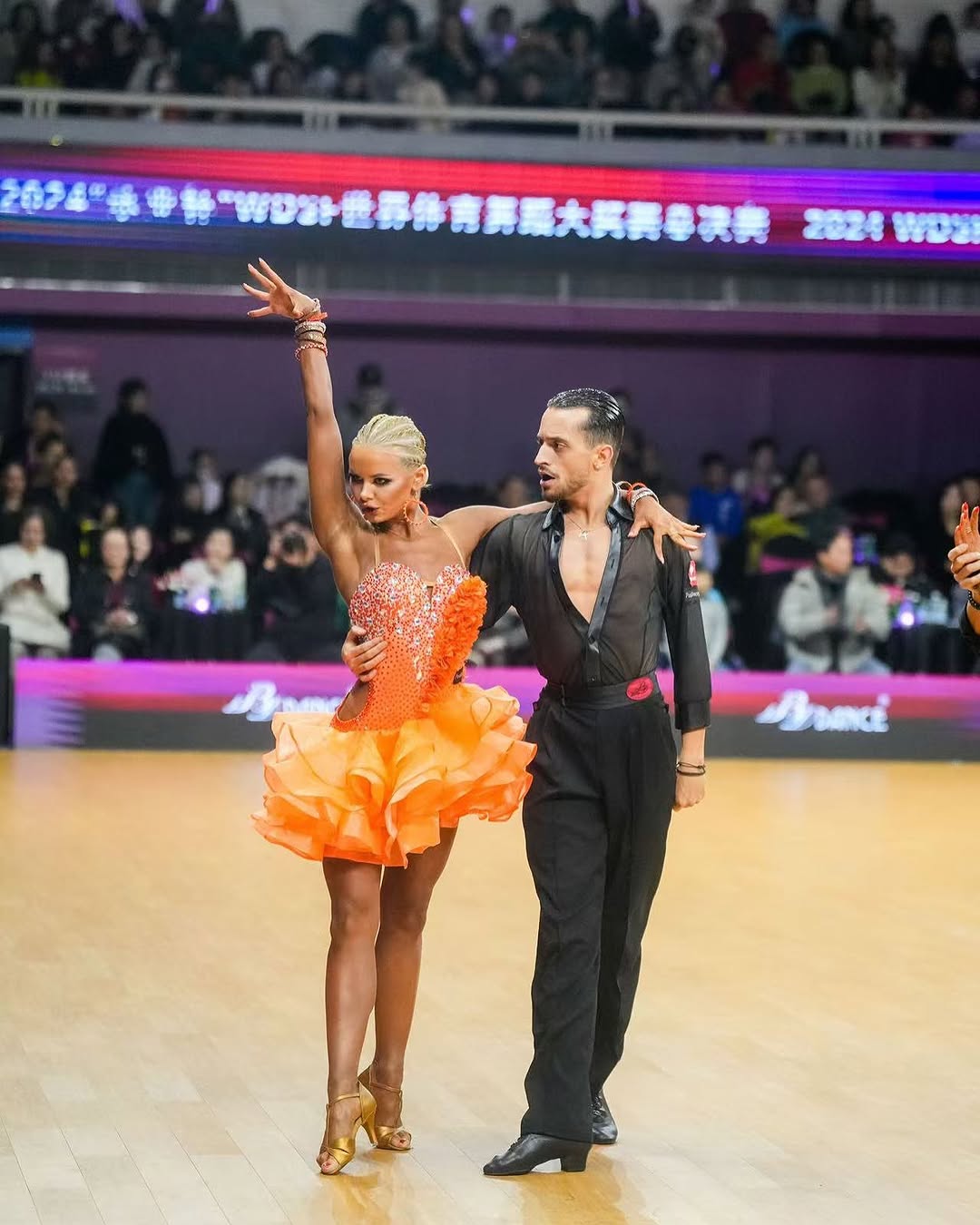 @kristinamoshenskaya & @marius_balan just leveled up the game! Yeah, you saw it coming!Watch them own the floor with that champion swag,Every move screams "VICTORY"!#bddance #udance #udanceroyals #latin #dancewear