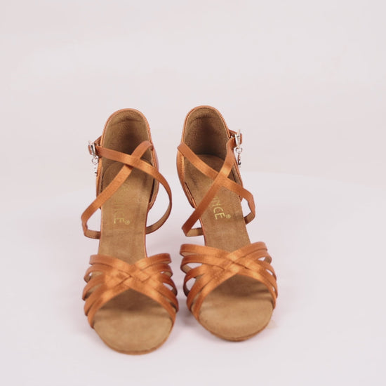- Stylish Design: These elegant women's dancing shoes feature a strappy, crisscross design crafted from premium suede material in a rich tan hue.