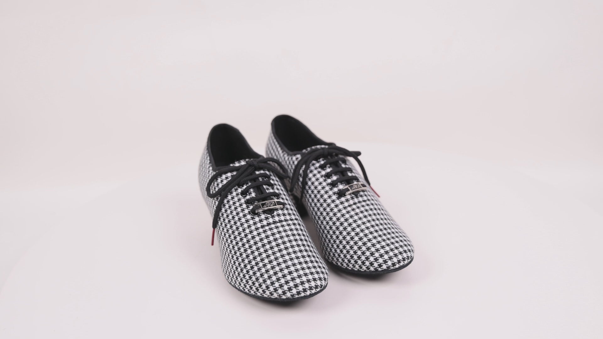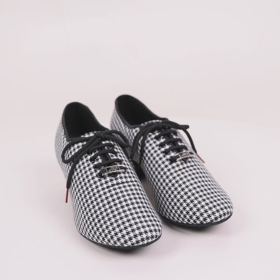 - DESIGN: Classic Oxford-style dance shoe featuring elegant houndstooth pattern in black and white with lace-up closure for secure fit