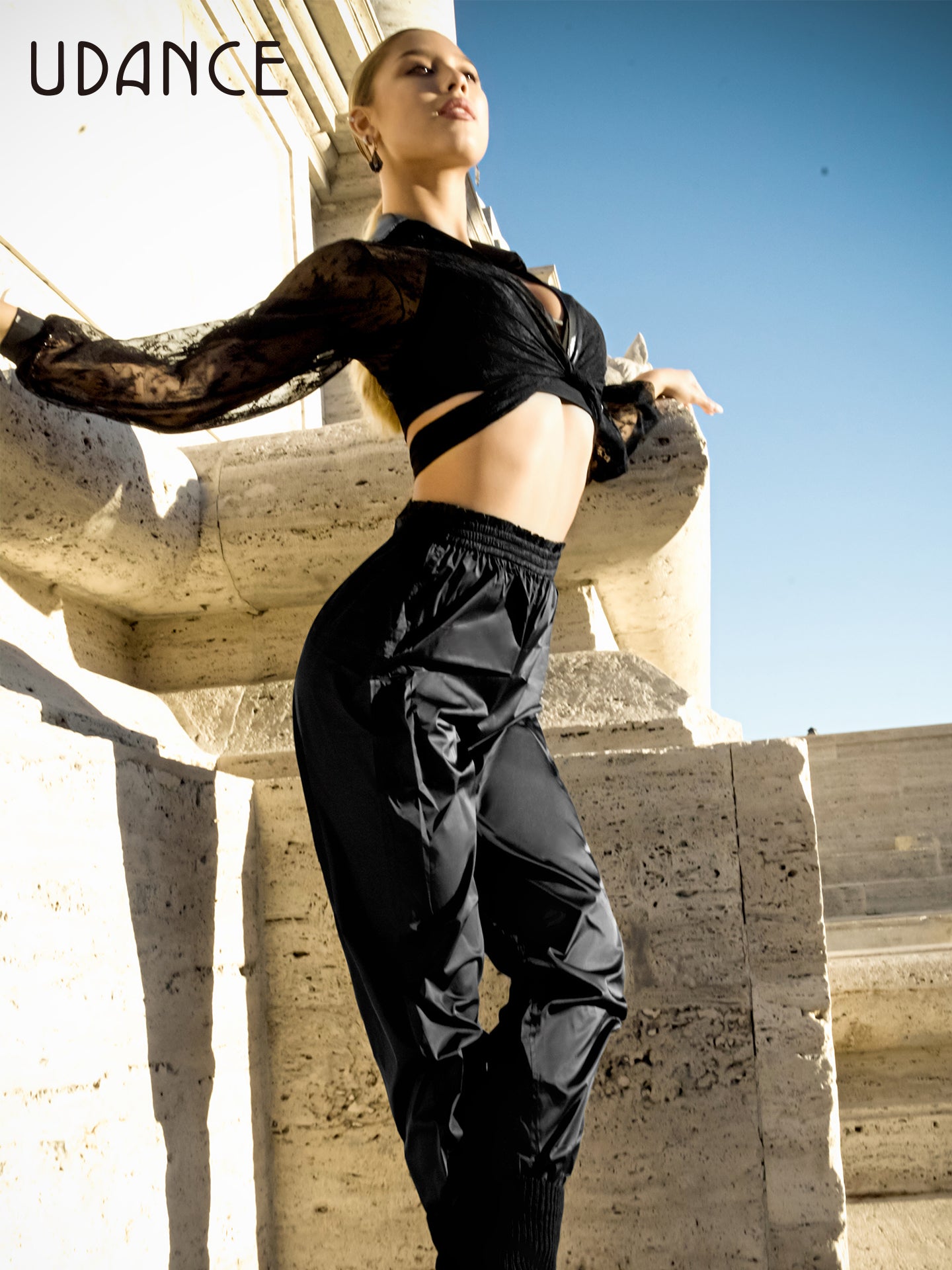 UDANCE Latin Dance Crop Top Women's New Adult Mesh Professional Practice Wear Lace Long Sleeve Dancewear A72
