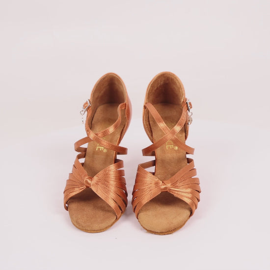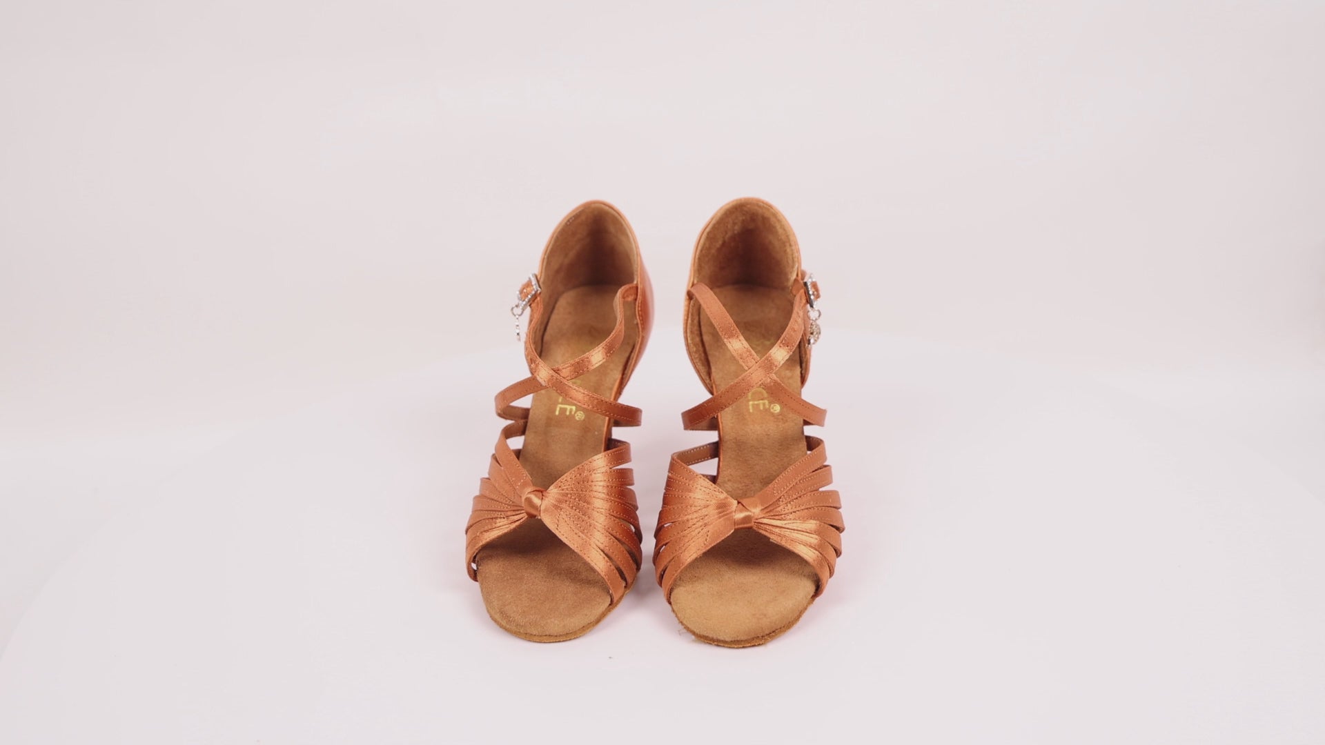 - DESIGN: Professional dance sandals featuring elegant crossed straps, knotted front detail, and secure ankle strap with rhinestone buckle closure