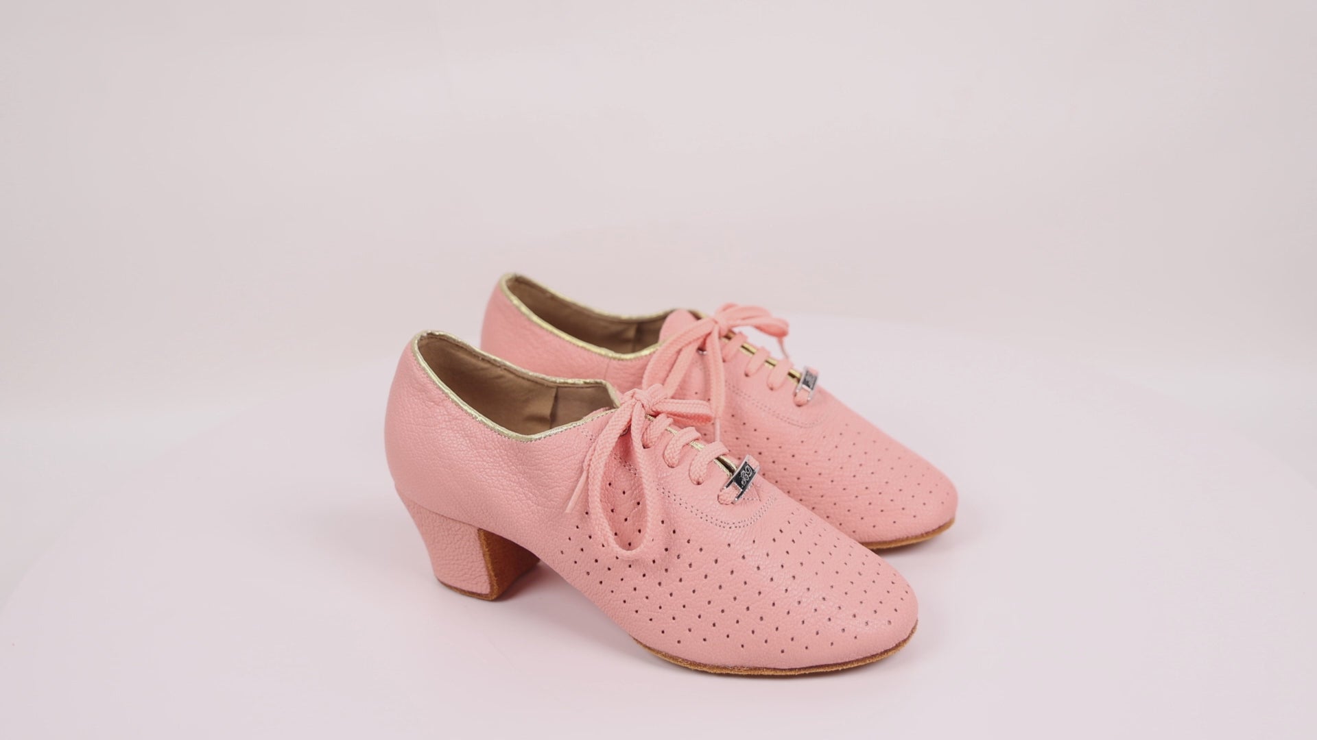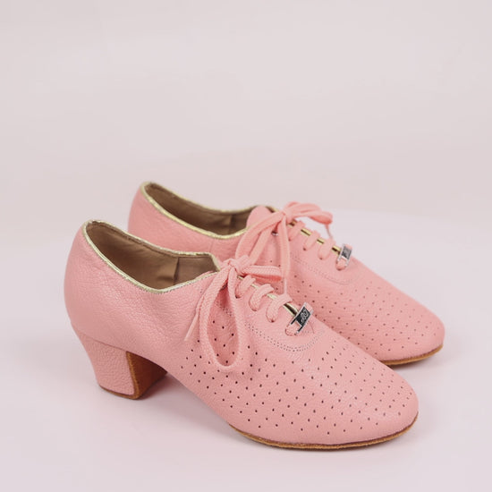 BD Dance Women's Practice Latin Dance Shoes Mesh Perforated Design Professional Ballroom Dancing Oxford Performance Pink Leather #T1-B